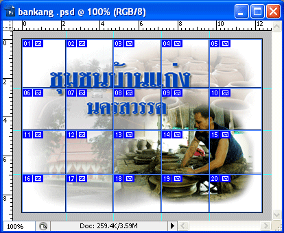 ภาพที่มีขนาดใหญ่จะนำมาใส่ในหน้าเว็บเพจ จำเป็นต้องมีการแบ่งซอยภาพให้เป็นภาพรูปเล็ก ๆ นำมาเรียงต่อกันเป็นภาพเดียวกัน จะทำให้การดาวน์โหลดได้เร็วขึ้น การแบ่งซอยภาพสำหรับเว็บไซต์ใช้โปรแกรม Adobe Photoshop ในการแบ่งภาพให้เป็นตาราง โดยภาพจะแบ่งออก เป็นส่วน ๆ และขั้นตอนต่อไปเป็นการบันทึกภาพนำไปใช้งานในเว็บไซต์